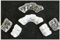 一層目は弾性の高い素材でプレス、二層目には堅めのシートが重ねてプレスされます。堅めのシートにより口腔内で均一の力をかけてボンディング作業ができます。